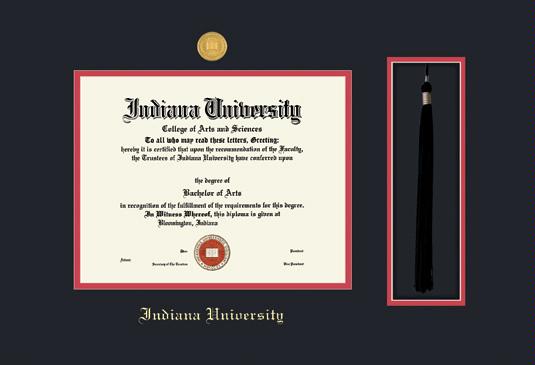 Indiana University (Bloomington) Diploma - BA/MA/PhD (Pre 6/22) Frame with Medallion and Tassel Cut-out and Black and Riviera Red Double Mat and Gold Embossing