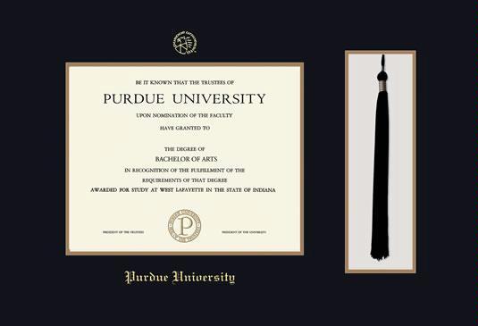 Purdue University Diploma Frame with Tassel Cut-out and Black and Gold Double Mat and Gold Embossing