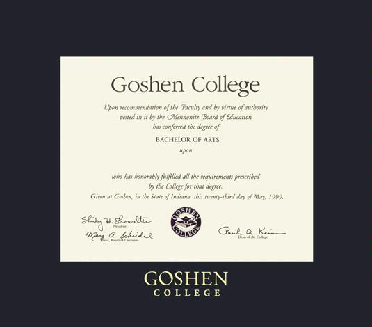 Goshen College Diploma (1/05 to Present) Frame with Black Mat and Gold Embossing