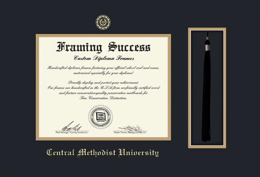 Central Methodist University Diploma with Tassel Cut-out Frame Featuring a Black and Gold Double Mat with Gold Embossing