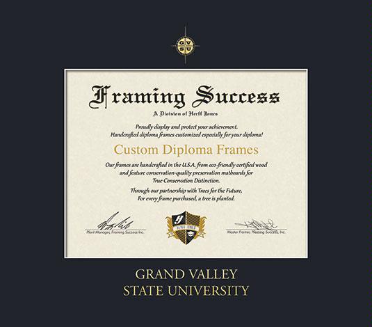 Grand Valley State University Diploma - Bachelor (9/16-Pres) and Master (Pre 9/16) Frame with Black Mat and Gold Embossing