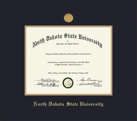 North Dakota State University Diploma Frame with Medallion and Black and Gold Double Mat and Gold Embossing