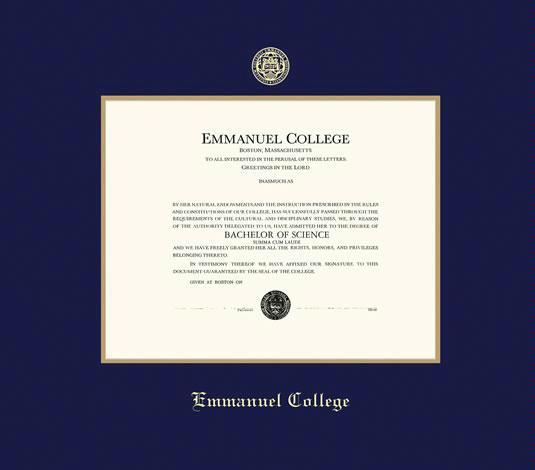 Emmanuel College (MA) Diploma (3/04 to Present) Frame with Navy Blue and Gold Double Mat and Gold Embossing