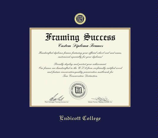 Endicott College Diploma - MA (5/06 to Present) Frame with Navy Blue and Gold Double Mat and Gold Embossing