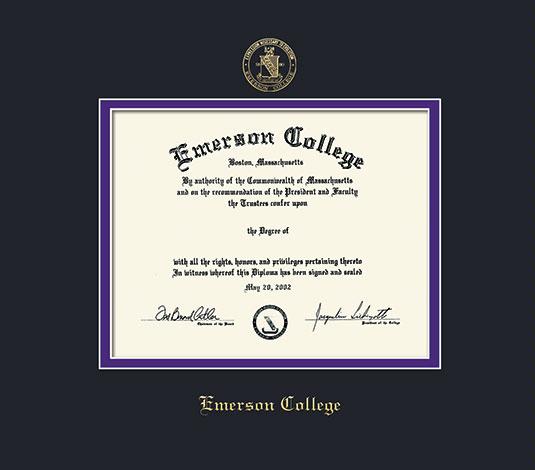 Emerson College Diploma Frame (12/21 to Present) with Black and Purple Double Mat and Gold Embossing