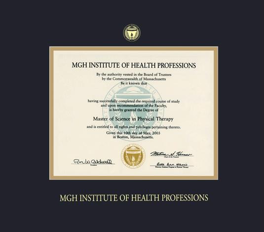 MGH Institute of Health Professions Certificate of Advanced Study (9/09 to Present) and Bachelor/Master (Pre 9/09) Frame with Black and Gold Double Mat and Gold Embossing