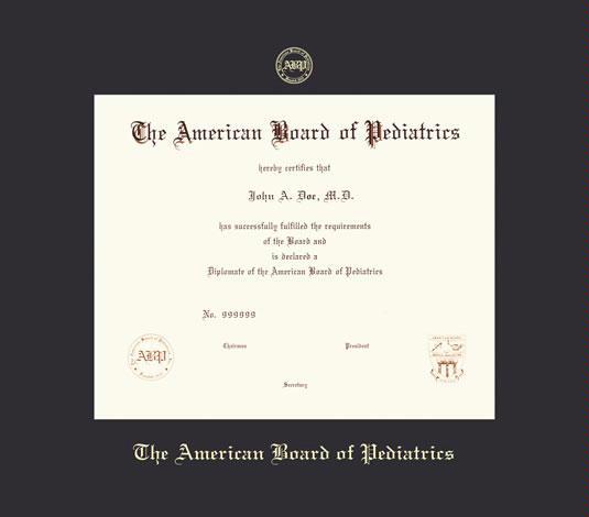 American Board of Pediatrics Certificate Frame with Black Mat and with Gold Embossing
