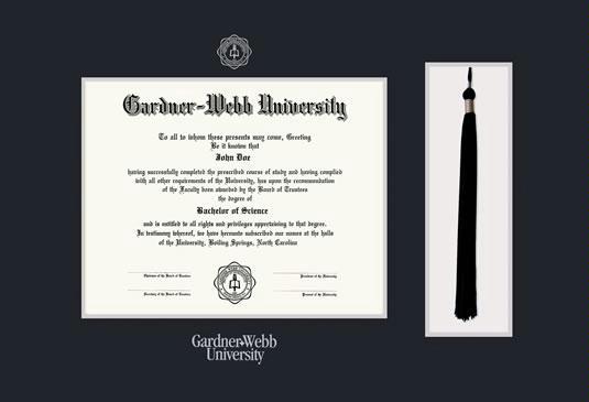 Gardner-Webb University Diploma with Tassel Cut-out Frame Featuring a Black and Silver Double Mat with Silver Embossing
