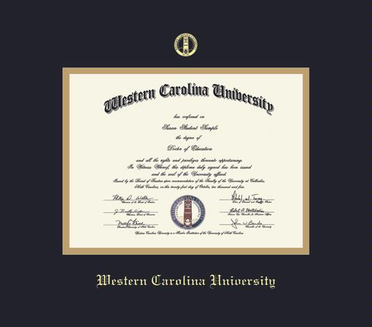 Western Carolina University Diploma - PhD/Honorary Degree/MA(9/06 to Pres) Frame with Black and Gold Double Mat and Gold Embossing