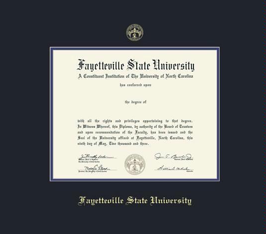 Fayetteville State University Diploma - MA (5/06 to 8/22) Frame with Black and Royal Blue Double Mat and Gold Embossing