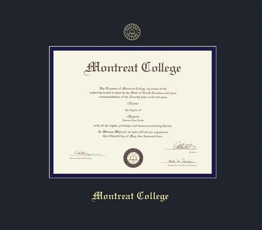Montreat College Diploma - All (2/05 to Present) Frame with Black and Navy Blue Double Mat and Gold Embossing