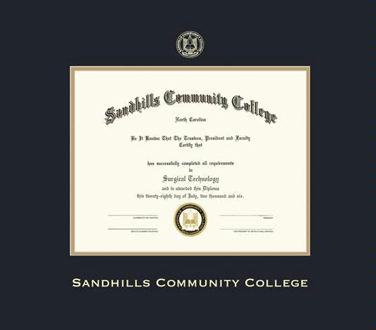 Sandhills Community College Diploma Frame with Black and Gold Double Mat and Gold Embossing