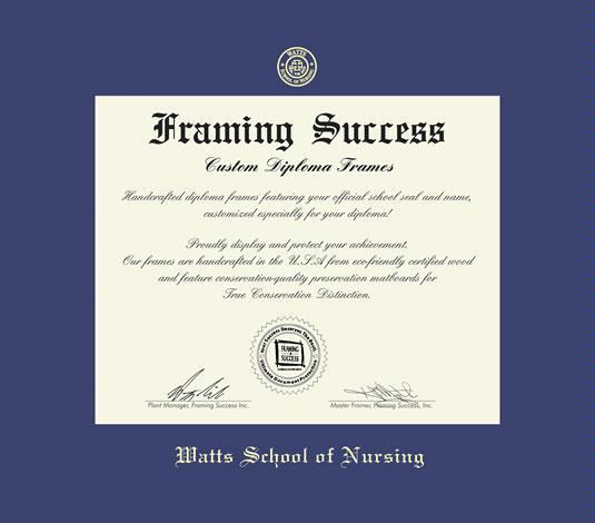 Watts School of Nursing Diploma (Pre 10/22) Frame with Royal Blue Mat and Gold Embossing