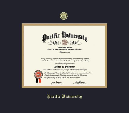 Pacific University Diploma - BA/MA (5/02 to Present) Frame with Black and Gold Double Mat and Gold Embossing