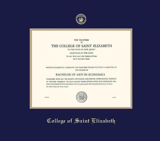College of Saint Elizabeth Diploma (Pre 7/20) Frame with Navy Blue and Gold Double Mat and Gold Embossing