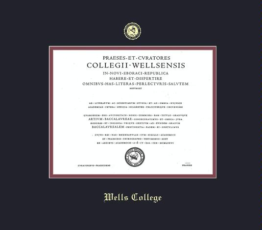 Wells College Diploma Frame with Black and Maroon Double Mat and Gold Embossing