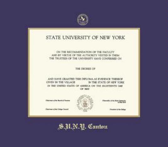 SUNY Canton-College of Technology Diploma Frame with Navy Blue and Gold Double Mat and Gold Embossing
