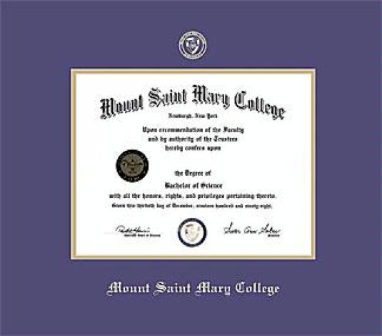 Mount Saint Mary College Diploma Frame with Royal Blue and Gold Double Mat and Gold Embossing