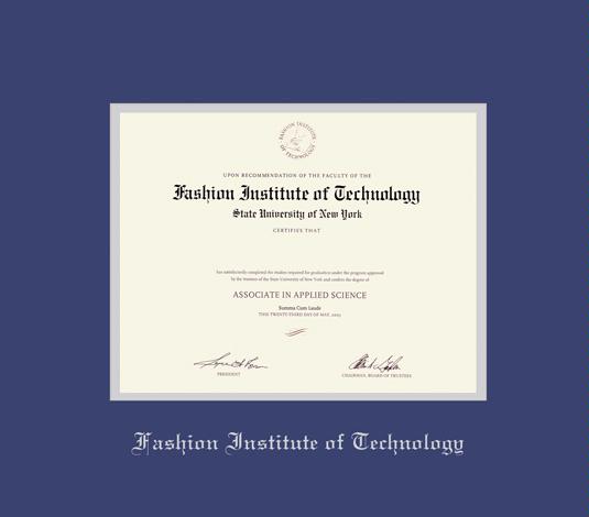 Fashion Institute of Technology Diploma Frame with Royal Blue and Silver Double Mat and Silver Embossing