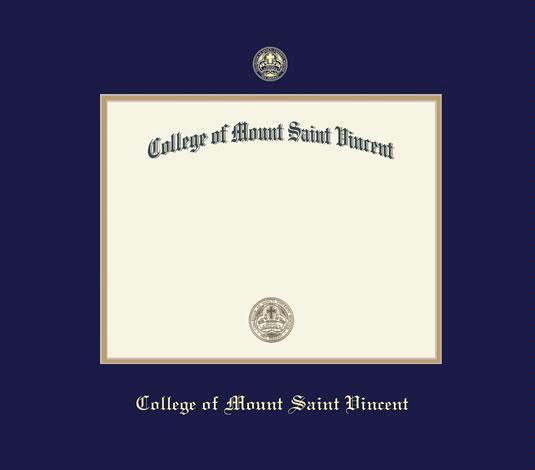 College of Mount Saint Vincent Diploma Frame with Navy Blue and Gold Double Mat and Gold Embossing