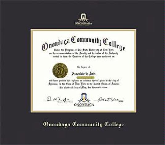 Onondaga Community College Diploma Frame with Black and Gold Double Mat and Gold Embossing