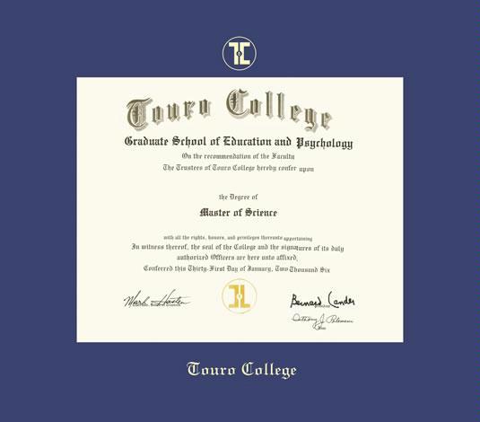 Touro College Diploma - Bachelor (Pre 2022) Frame with Royal Blue Mat and Gold Embossing