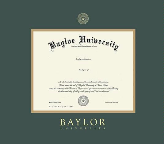 Baylor University Diploma (Spring 2000 to Present) Frame with Green and Gold Double Mat and Gold Embossing