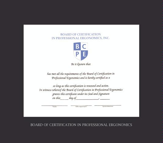 Board of Certification in Professional Ergonomics Certificates - All (9/10 to Present) Frame with Black Mat and Silver Embossing
