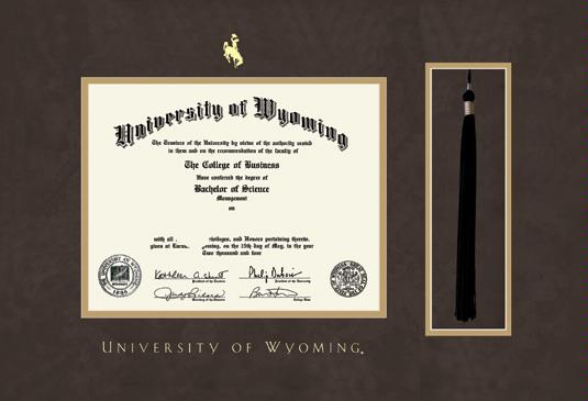 University of Wyoming Diploma - BA/MA/PHD Frame with Tassel cut-out and Brown Suede and Gold Double Mat and Gold Embossing