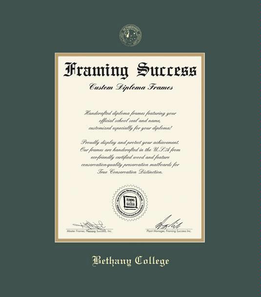 Bethany College BA Diploma (Pre 2023) Frame with Green and Gold Double Mat and Gold Embossing