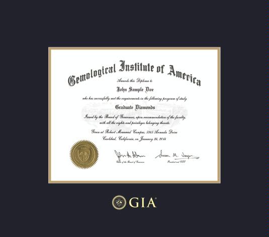 Gemological Institute of America Certificate or Diploma - (1/11 to present) measuring 8.5 x 11 Frame with Black and Gold Double Mat and Gold Embossing