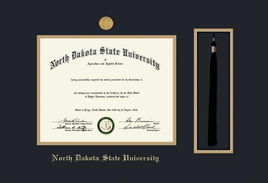 North Dakota State University Diploma Frame with Medallion and Tassel Cut-out and Black and Gold Double Mat and Gold Embossing