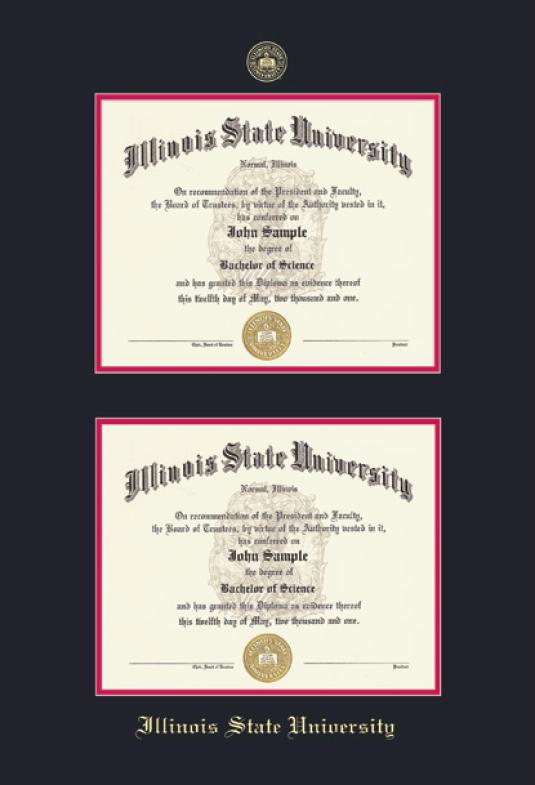Illinois State University Double Diploma (1/11 to Present) Frame with Black and Red Double Mat and Gold Embossing