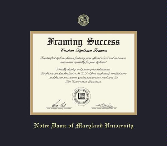 Notre Dame of Maryland University Diploma - PhD (9/11 to Present) Frame with Black and Gold Double Mat and Gold Embossing