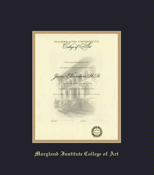 Maryland Institute College of Art Diploma (Pre 2024) Frame with Black and Gold Double Mat and Gold Embossing