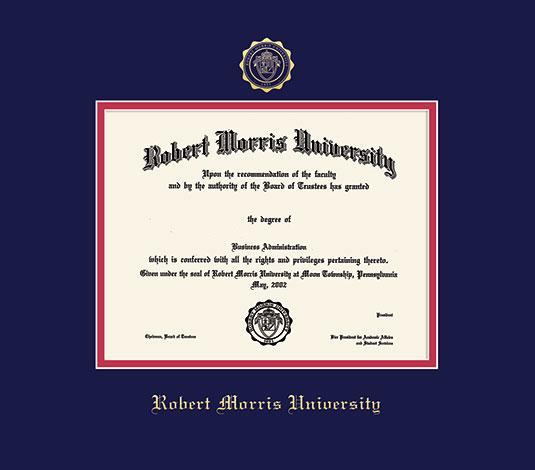 Robert Morris University Diploma - PhD Frame with Navy Blue and Red Double Mat and Gold Embossing