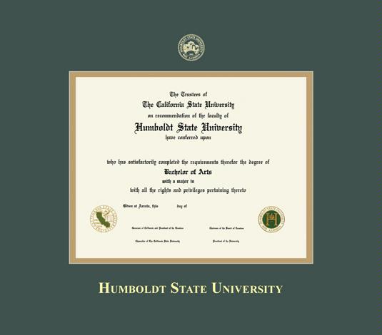 Humboldt State University Diploma (1/05 to 1/22) Frame with Green and Gold Double Mat and Gold Embossing