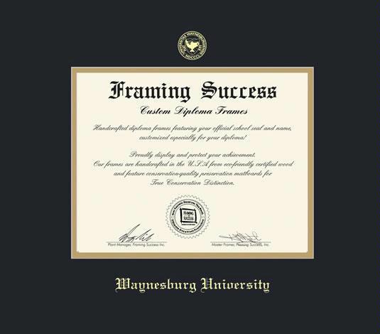 Waynesburg University Diploma - MA (8/07 to Present) Frame with Black and Gold Double Mat and Gold Embossing
