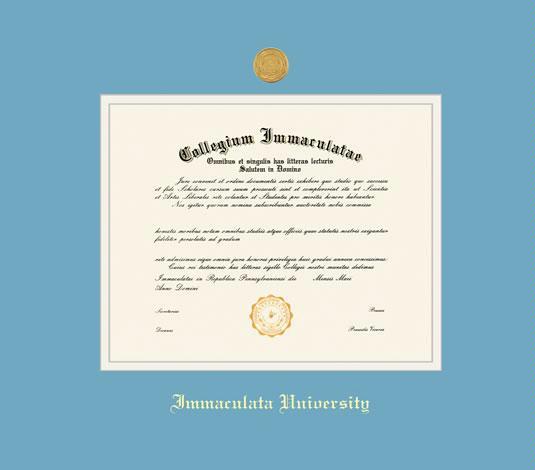Immaculata University Diploma - BA/MA (10/02 to Present) Frame with Medallion and Blue and Cream Double Mat and Gold Embossing