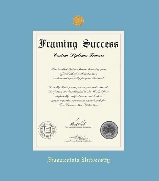 Immaculata University Diploma - Doctorate (10/02 to Present) Frame with Medallion and Blue and Cream Double Mat and Gold Embossing