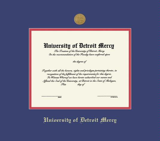 University of Detroit Mercy Diploma - BA/MA/PhD (8/12 to Present) Frame with Medallion and Royal Blue and Red Double Mat and Gold Embossing
