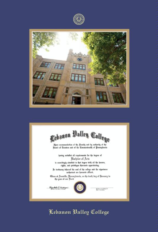 Lebanon Valley College Diploma and Photo Frame with Royal Blue and Gold Double Mat and Gold Embossing