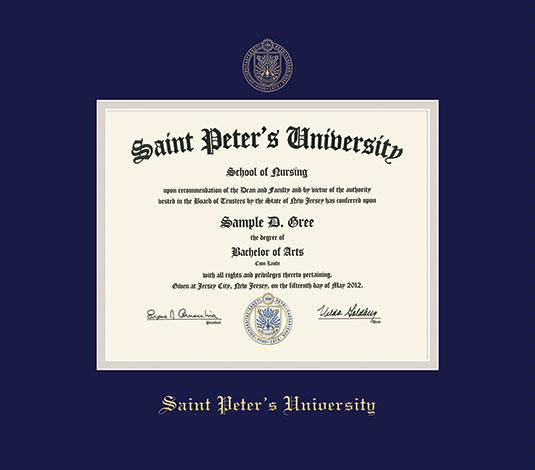 Saint Peter's University Diploma - BA (10/12 to Present) Frame with Navy Blue and Cream Double Mat and Gold Embossing