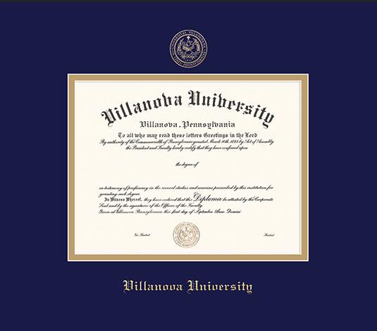 Villanova University Diploma Frame with Navy Blue and Gold Double Mat and Gold Embossing