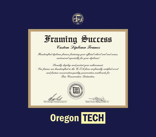 Oregon Institute of Technology Diploma Frame with Navy Blue and Gold Double Mat and Gold Embossing