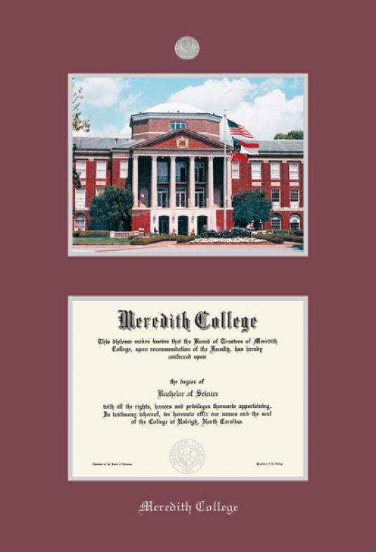 Meredith College Diploma (2013 to Present) and Photo Frame with Medallion and Maroon and Silver Double Mat and Silver Embossing