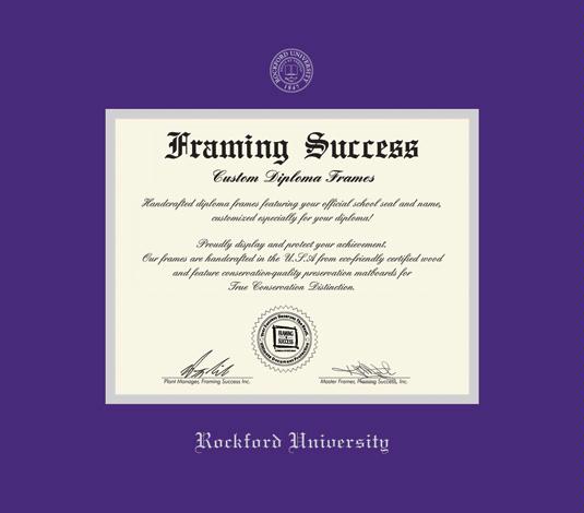 Rockford University Diploma (7/13 to Present) Frame with Purple and Silver Double Mat and Silver Embossing