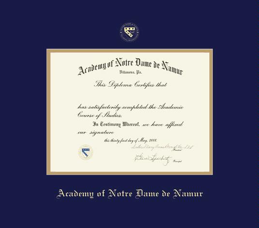 Academy of Notre Dame de Namur Diploma (5/12 to Present) Frame with Black and Gold Double Mat and Gold Embossing