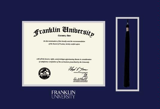 Franklin University Diploma (6/13 to Present) Frame with Tassel Cut-out and Navy Blue and Silver Double Mat and Silver Embossing