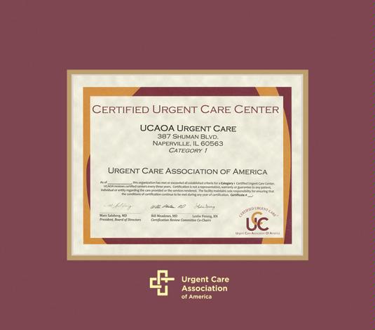 Urgent Care Association of America Certificate - Certified Urgent Care Center (CUC) Frame with Maroon and Gold Double Mat and Gold Embossing